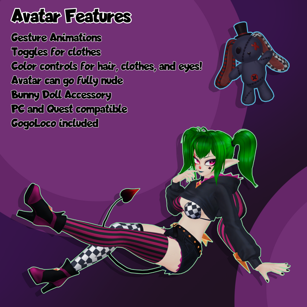 This avatar uses Poiyomi toon shader and VRCFury, links for all needed requisites for the project are included in the package.